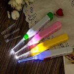 Flashlight ear pick this earpick with one led flashlight helps to clean ear easily and convenientlProvides a safe and easier way to clean your families ears and remove ear wax!Cute style for babies and kids, safe and reliable earpicks for household and travel use.y,