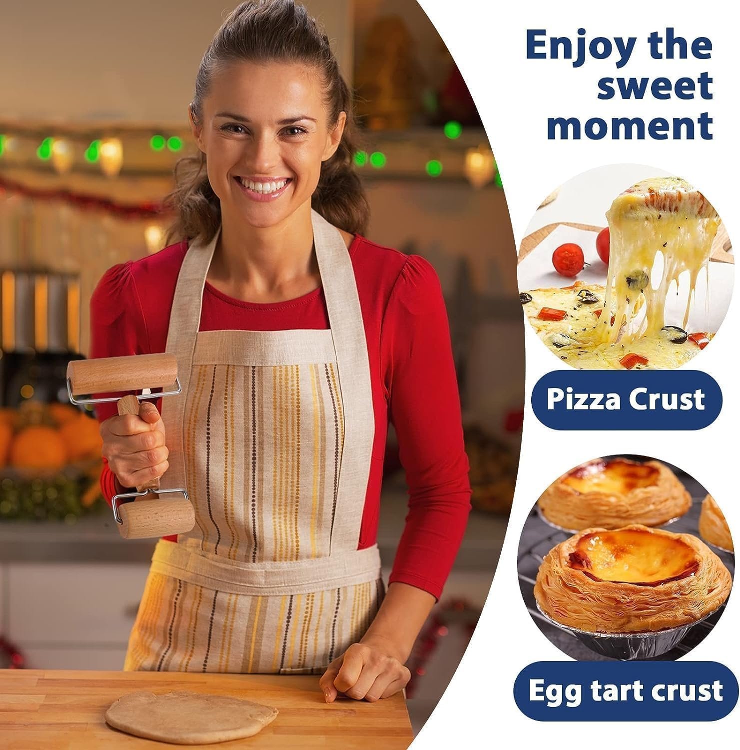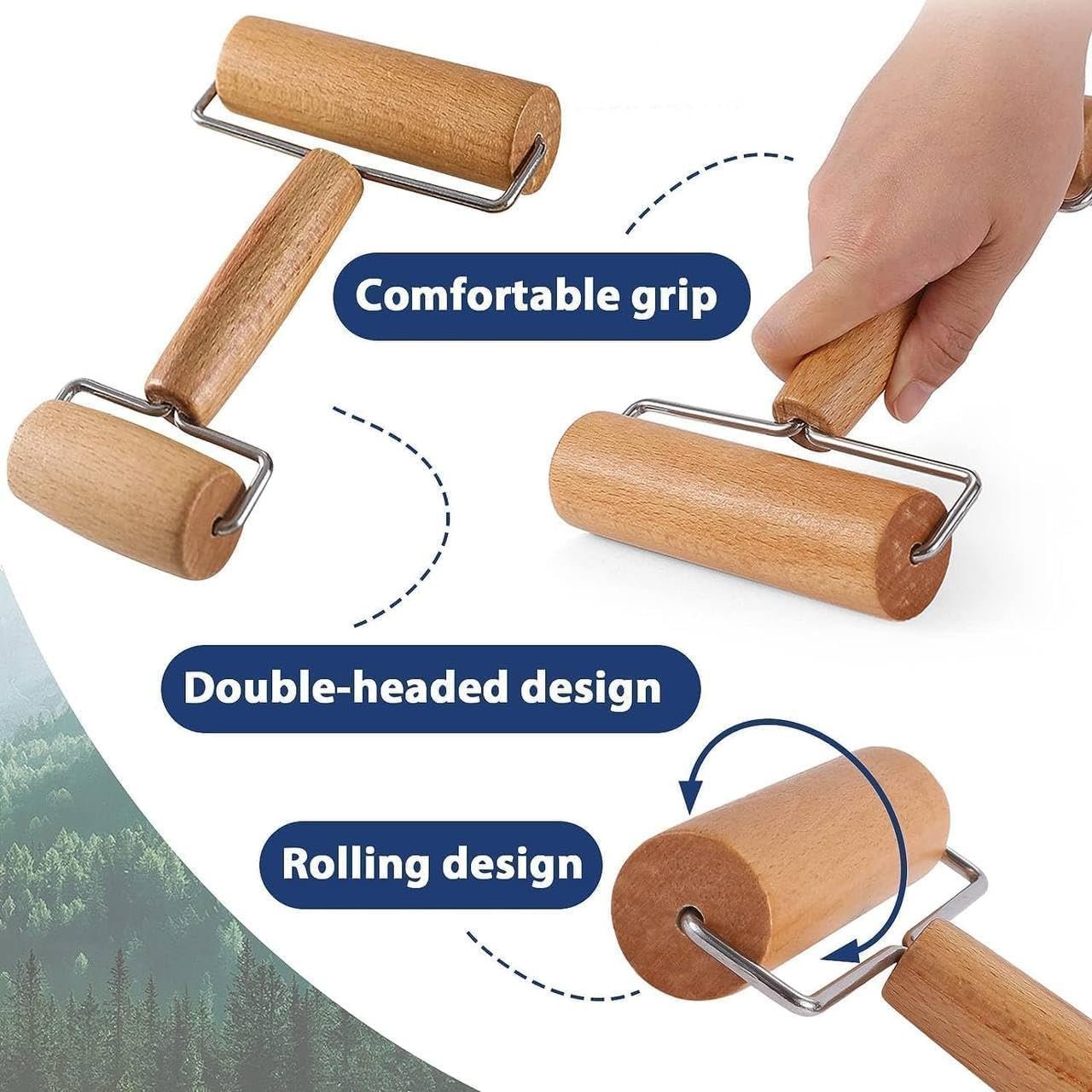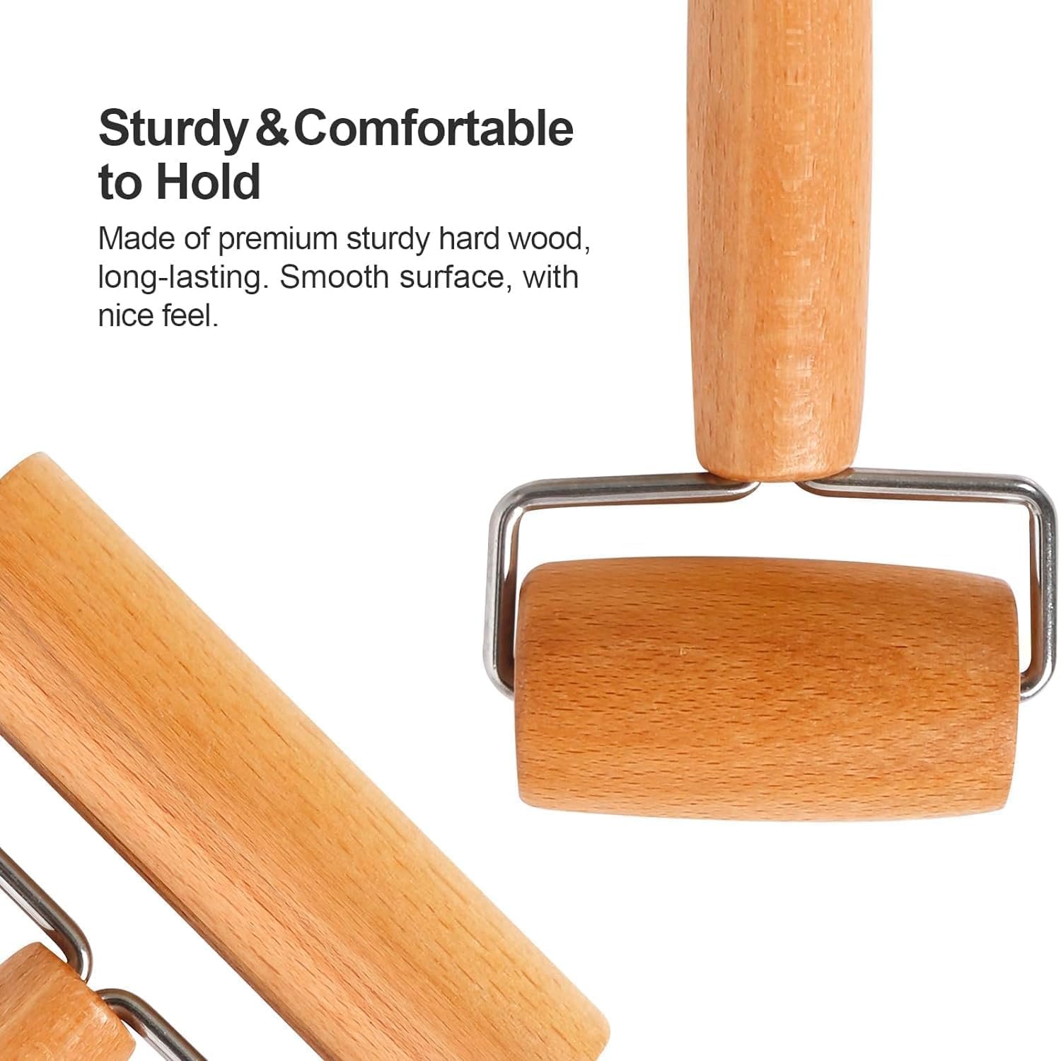 Double Head Wooden Rolling Pin, T Shape Roller for Pastry, Pizza, Cookie, Roti Making