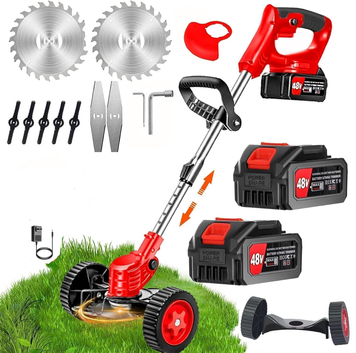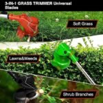 3 in 1 Cordless Grass Trimmer & Brush Cutter with 2 PCS Battery and 3 Types Sharp Blades Telescopic Electric Lawn Mower Eater Cutting Machine for Gardening Lawn Garden Pruning