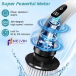 9 in 1 Electric Spin Scrubber,Cleaning Brush Scrubber for Home, 400RPM/Mins-9 Replaceable Brush Heads-90Mins Work Time,Adjustable Size,2 Adjustable Speeds for Bathroom Shower