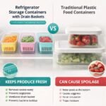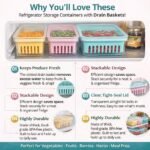 Refrigerator Storage Containers with Drain Basket, Produce Saver for Fruits & Vegetables, Stackable Fridge Organizer, BPA-Free Food Storage with Lid, Keeps Food Fresh Longer, Set of 1
