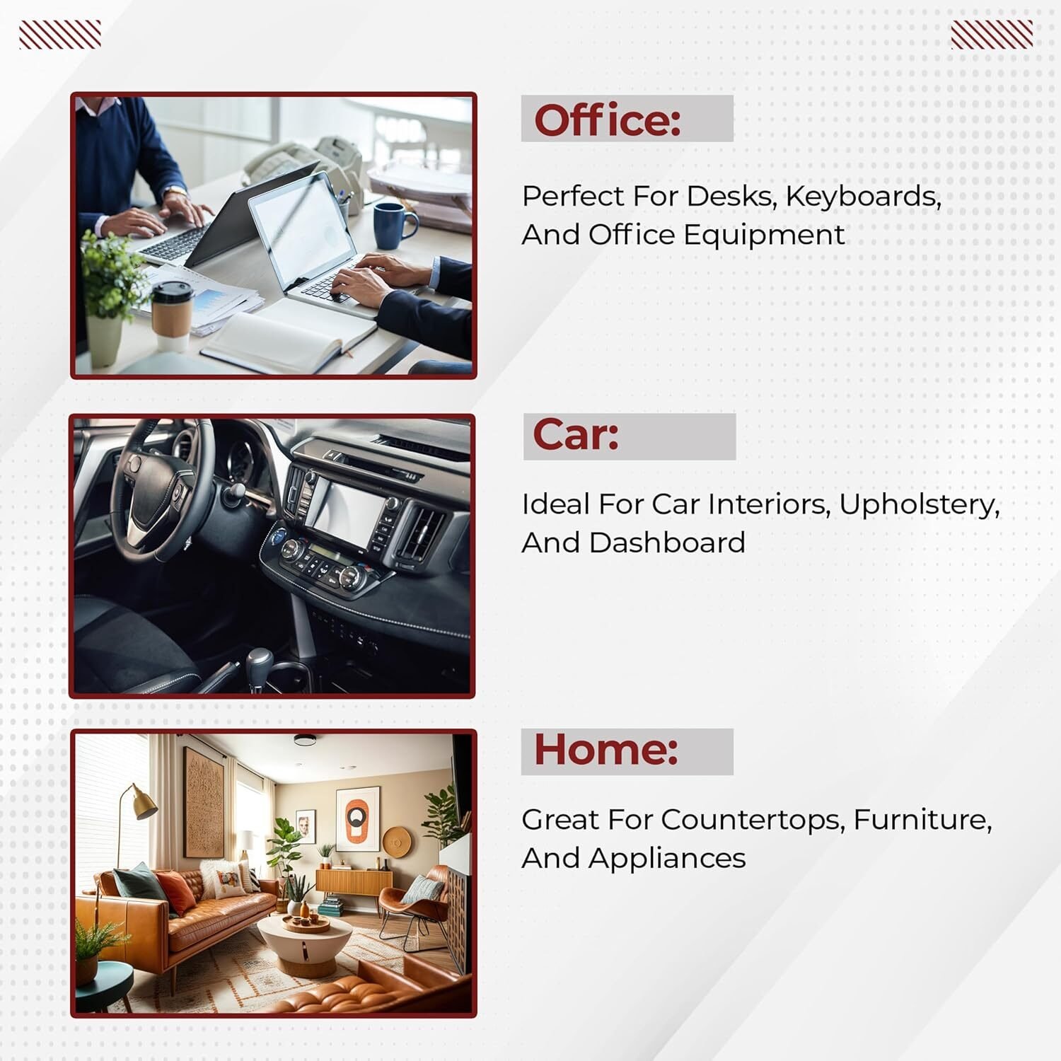 • Good at Cleaing: Our bristles can trap the dust and will not scratch or streak your car, computer, and household items. The perfect size to fit in the glove box. Save space in the car, don’t need too many tools to mess up the space.