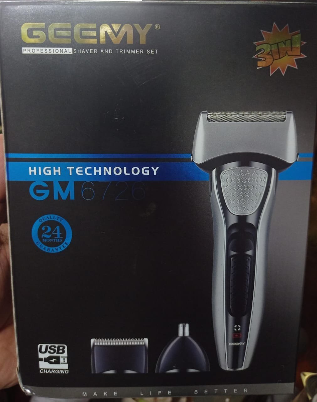 Unisex Geemy GM 6726 Electric Clipper Hair Cut Grooming Set 3-In-1 Beard Nose & Ear Trimmer Shaving Zero Machine