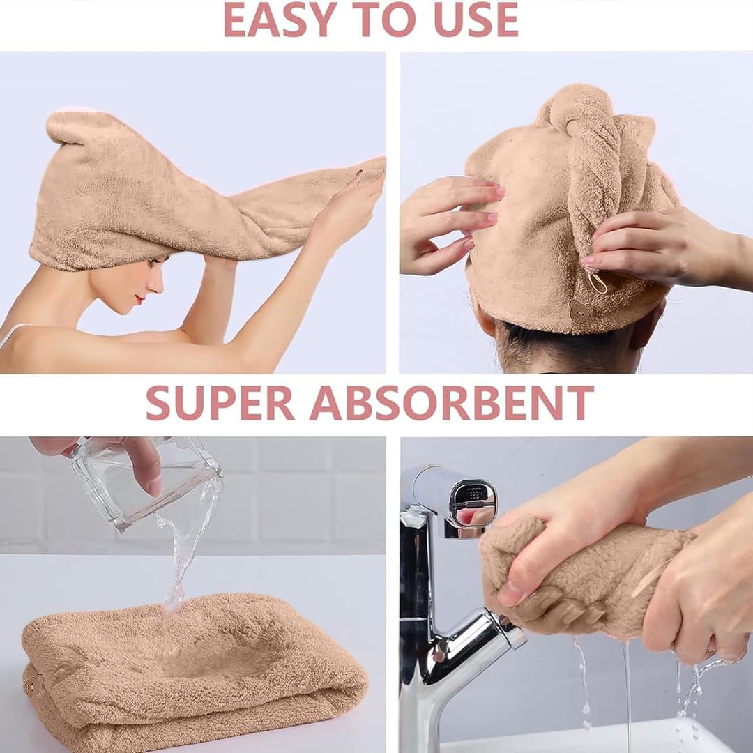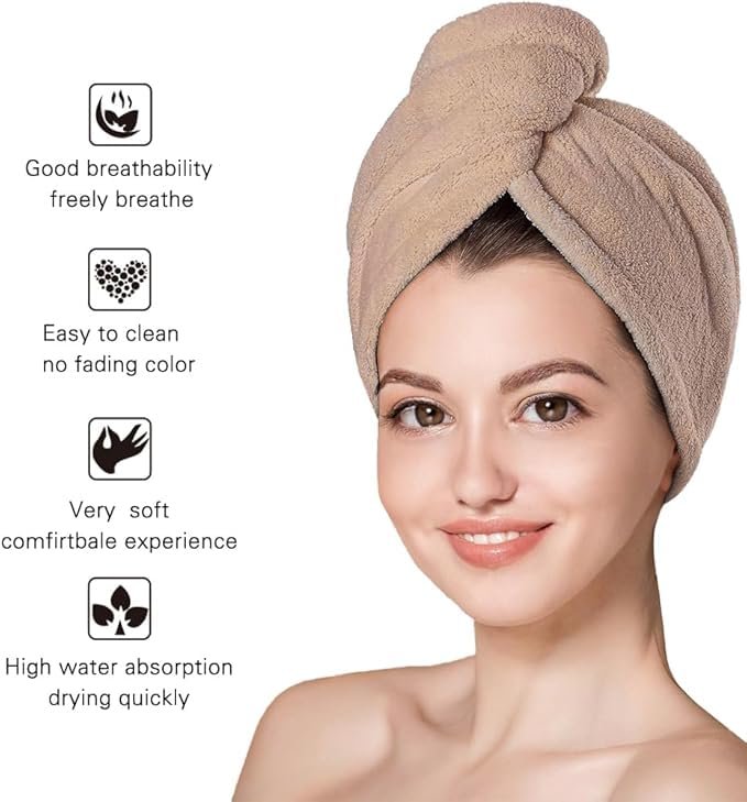 Hair Towel Wrap for Women – Quick Drying Microfiber Towel for Hair with Elastic Loop for Tying-Super Absorbent Head Towels Wrap for Ladies Hair Turban