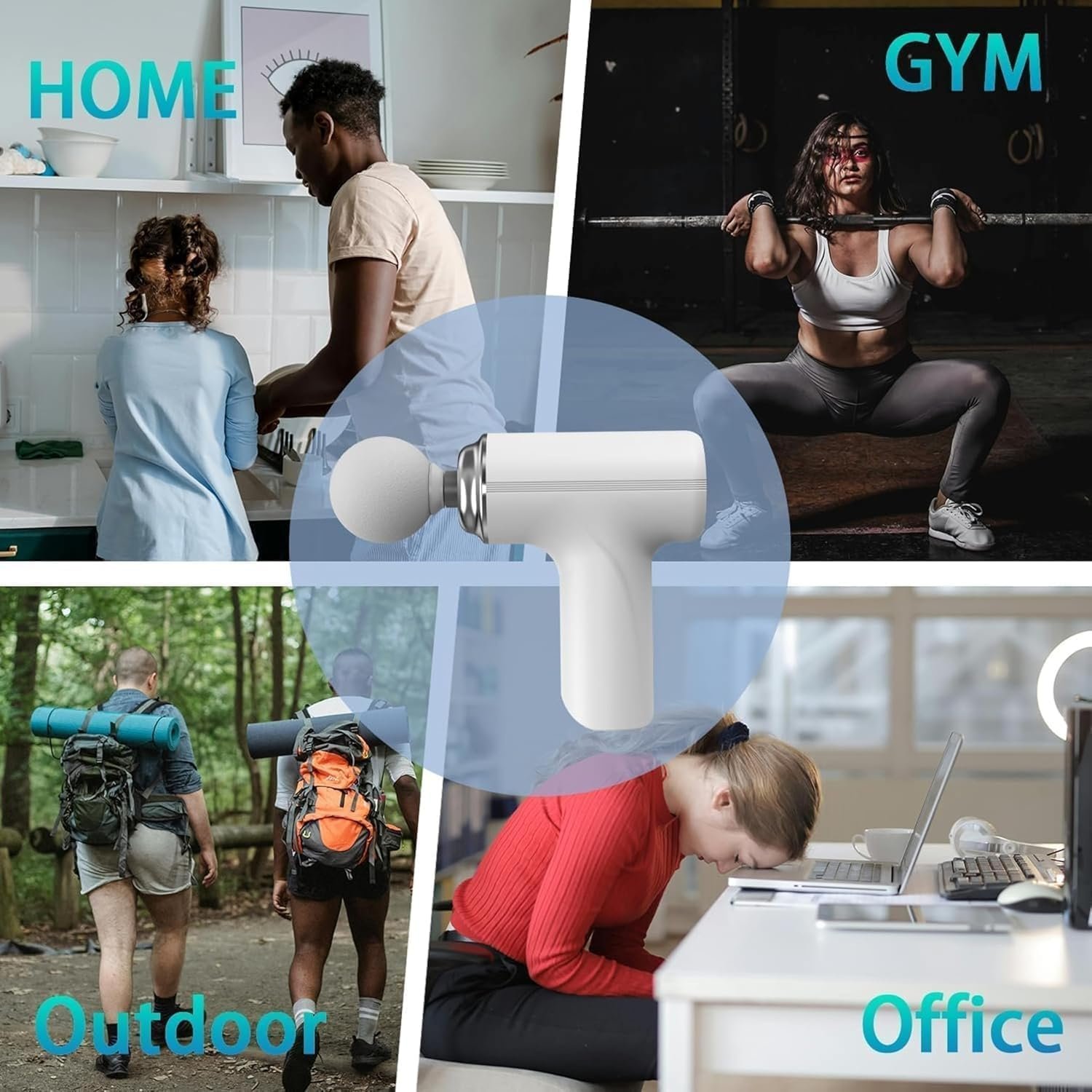 • 𝟒 𝐕𝐞𝐫𝐬𝐚𝐭𝐢𝐥𝐞 𝐌𝐚𝐬𝐬𝐚𝐠𝐞 𝐇𝐞𝐚𝐝𝐬: Our gun massager includes 4 detachable heads that ensure each pain point in the body is covered with the most appropriate contact. This massage machine features a Tip Head for all body parts, Small Flat Head for joints, U-Head for the spine, and Ball Head for large muscles.