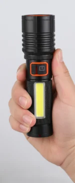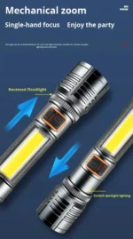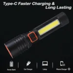 JUNHENG JH-035c Metal Torch: 500W + COB Work Light, 1500mAh Battery & USB C Charging Torch (Black, Rechargeable)