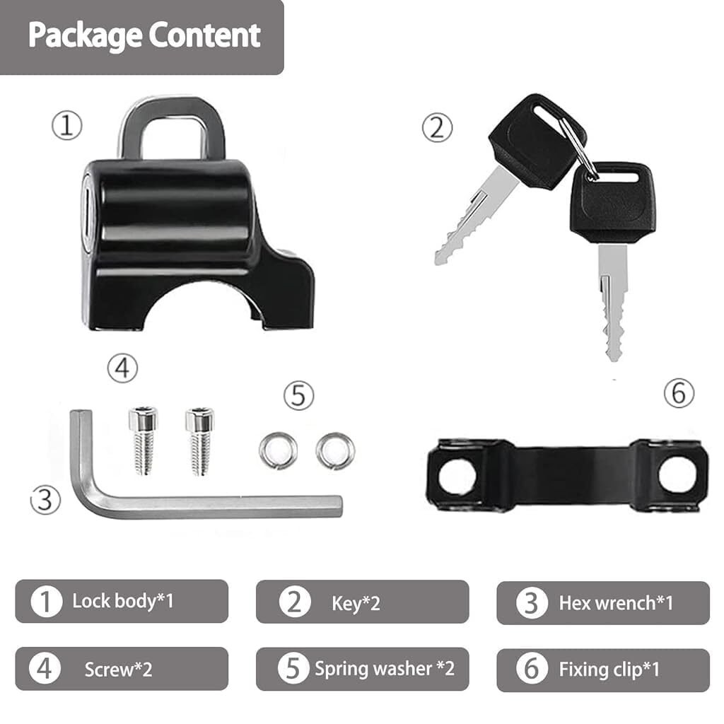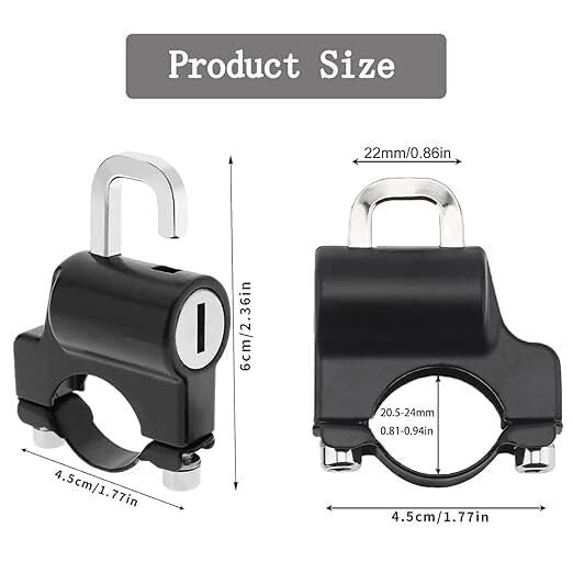 Motorcycle Helmet Lock,Motorbike Accessories,Bike Handlebar Tubing Helmet Lock,Anti-Theft Helmet Safety Lock Metal 22mm-26mm Black with 2 Keys Motorcycle Accessories