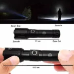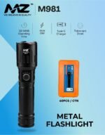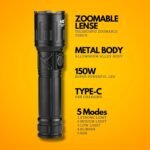 MZ M981 Rechargeable LED Metal Torch Zoomable with 5 Modes Flashlight, Super Bright 150W LED Light with 2400mAh Battery