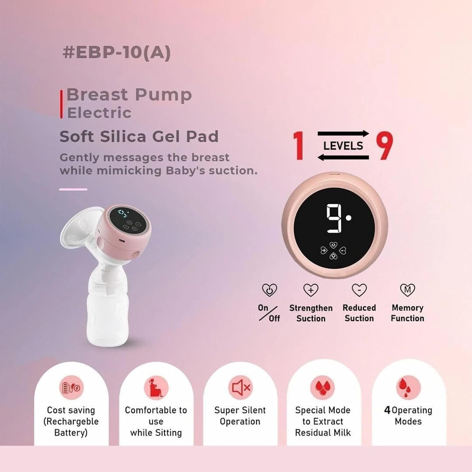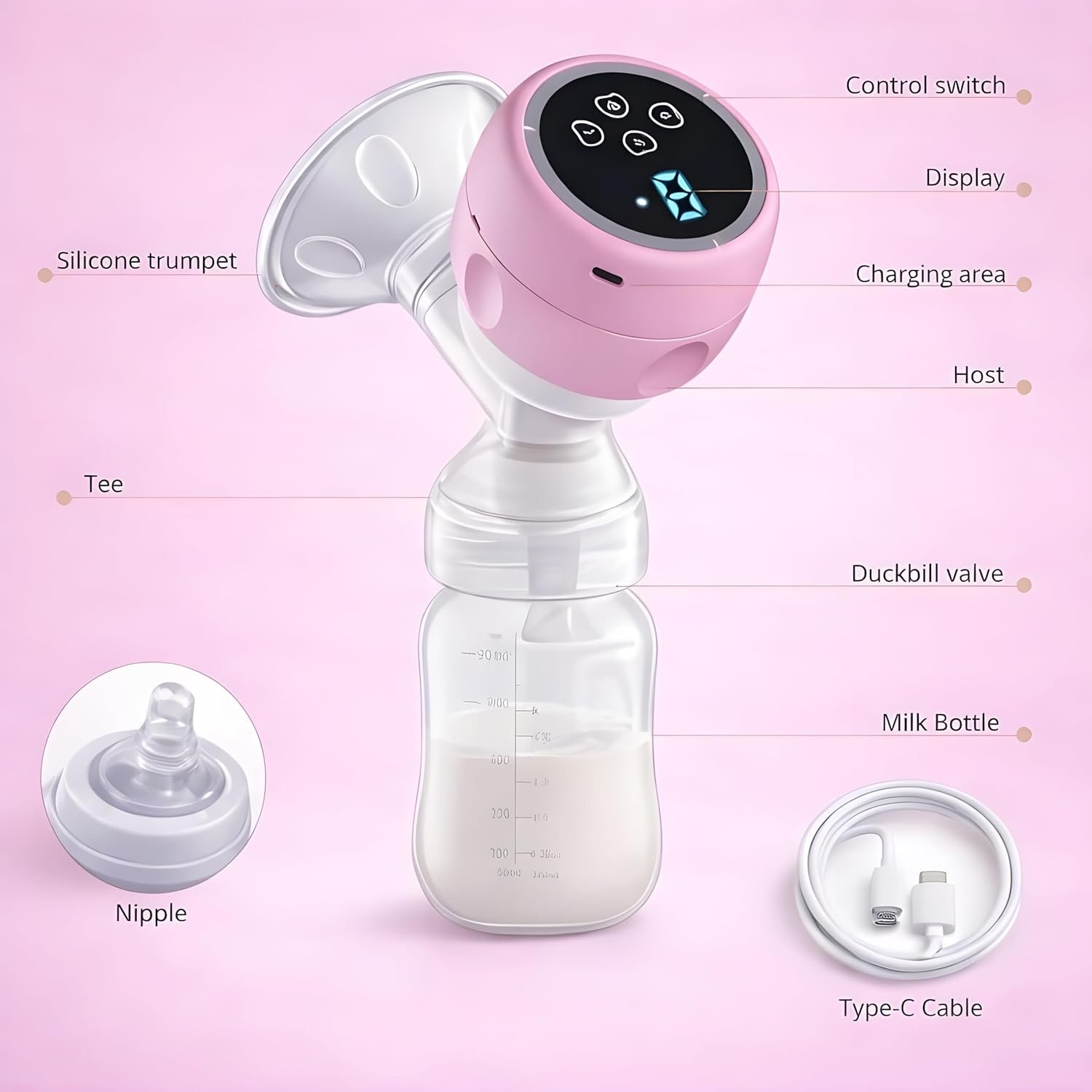 Portable Electric Breast Pump for Moms, USB Rechargeable with Digital Display, Adjustable Suction Levels, Quiet Operation, BPA Free Silicone, Leak-Proof & Anti-Backflow Design