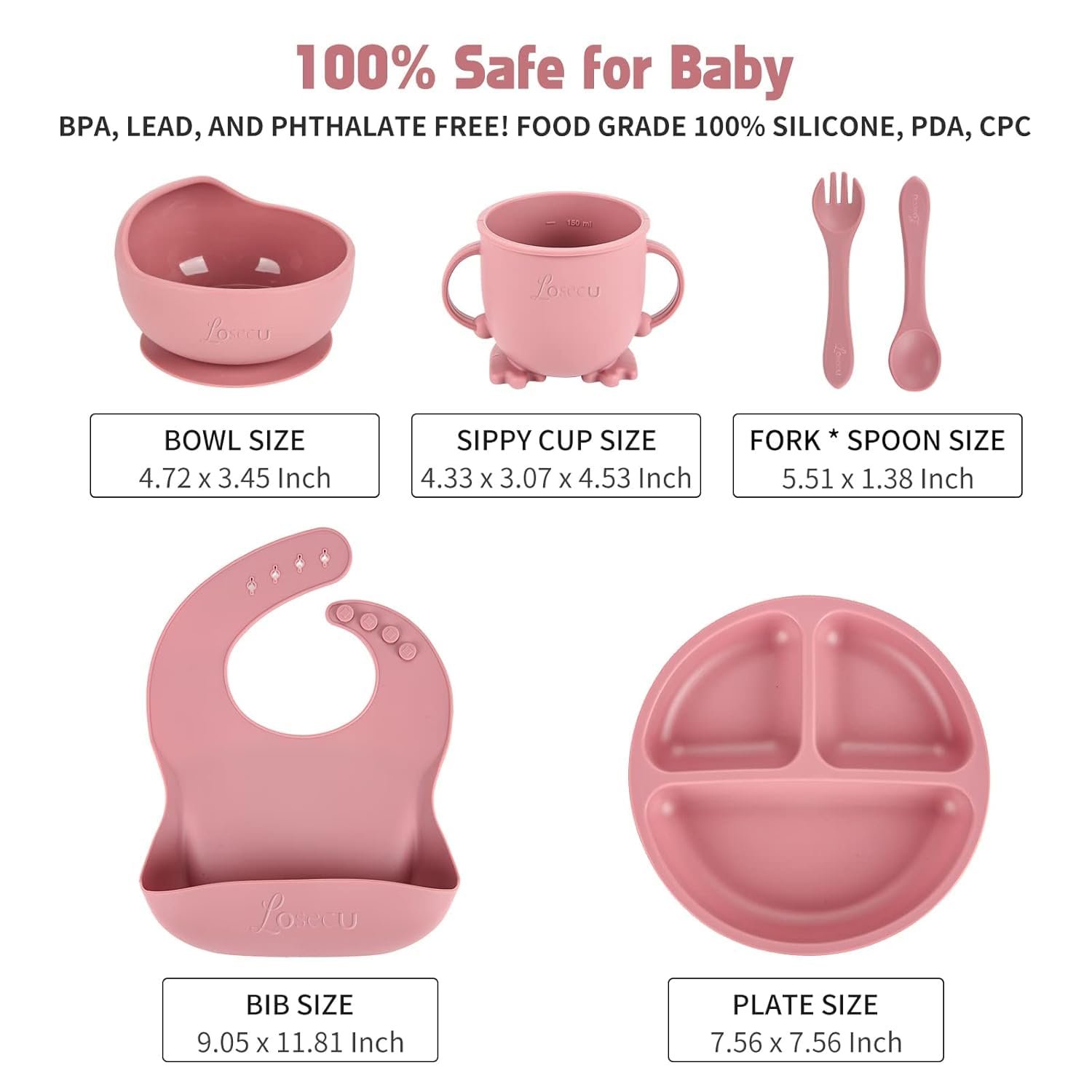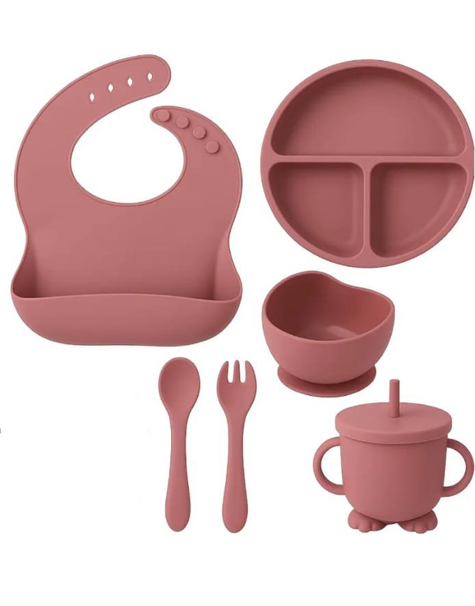 Baby Feeding Set for Toddlers – Baby Led Weaning Utensils with Silicone Bib, Suction Plate, Bowl, Spoon, Fork, Sippy Cup – Food Grade BPA Free, Dishwasher Safe Feeding Supplies for Babies