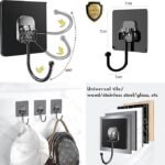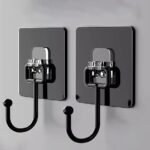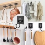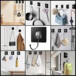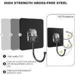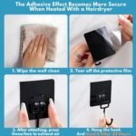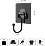 Black Self-Adhesive Wall Hooks Heavy Duty 7x7cm Large Waterproof Nail-Free Rustproof Metal Hooks for Bathroom Kitchen Bedroom Ceiling Home Towels Keys Bags Coats Clothes