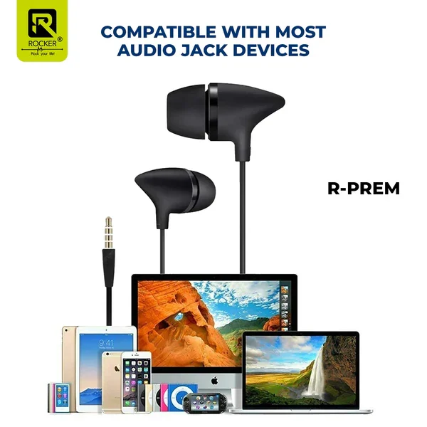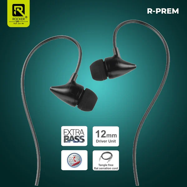 Rocker PREM Wired Earphones with Mic | Deep Bass Sound | Comfortable Fit | 3.5mm Jack Handsfree for Music and Calls
